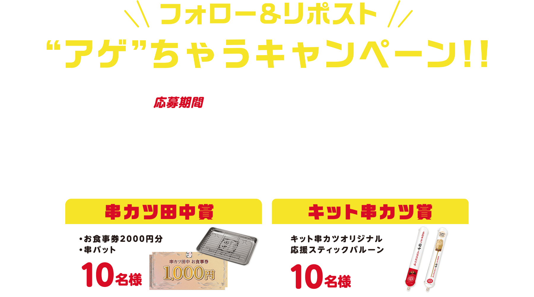 皆さまの「期待に応えて」「期待を超えて」揚げて応援!|串カツ田中【公式】