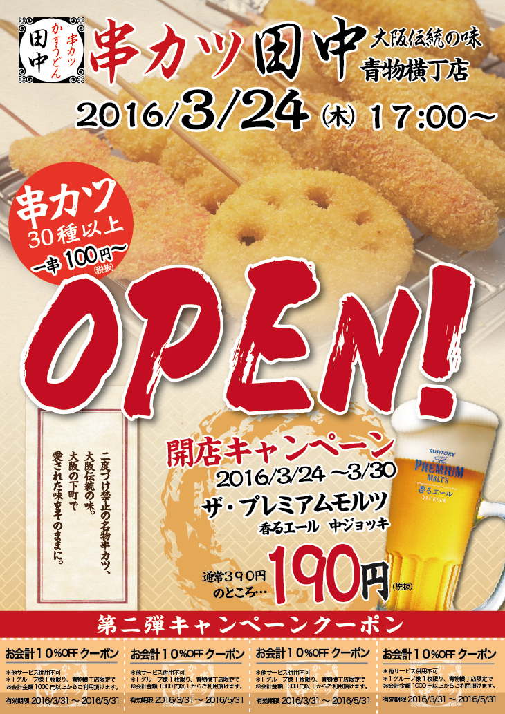 日頃、串カツ田中をご愛顧頂きまして誠にありがとうございます! 3月24日(木) 串カツ田中 青物横丁店 3月25日(金) 串カツ田中 錦三...