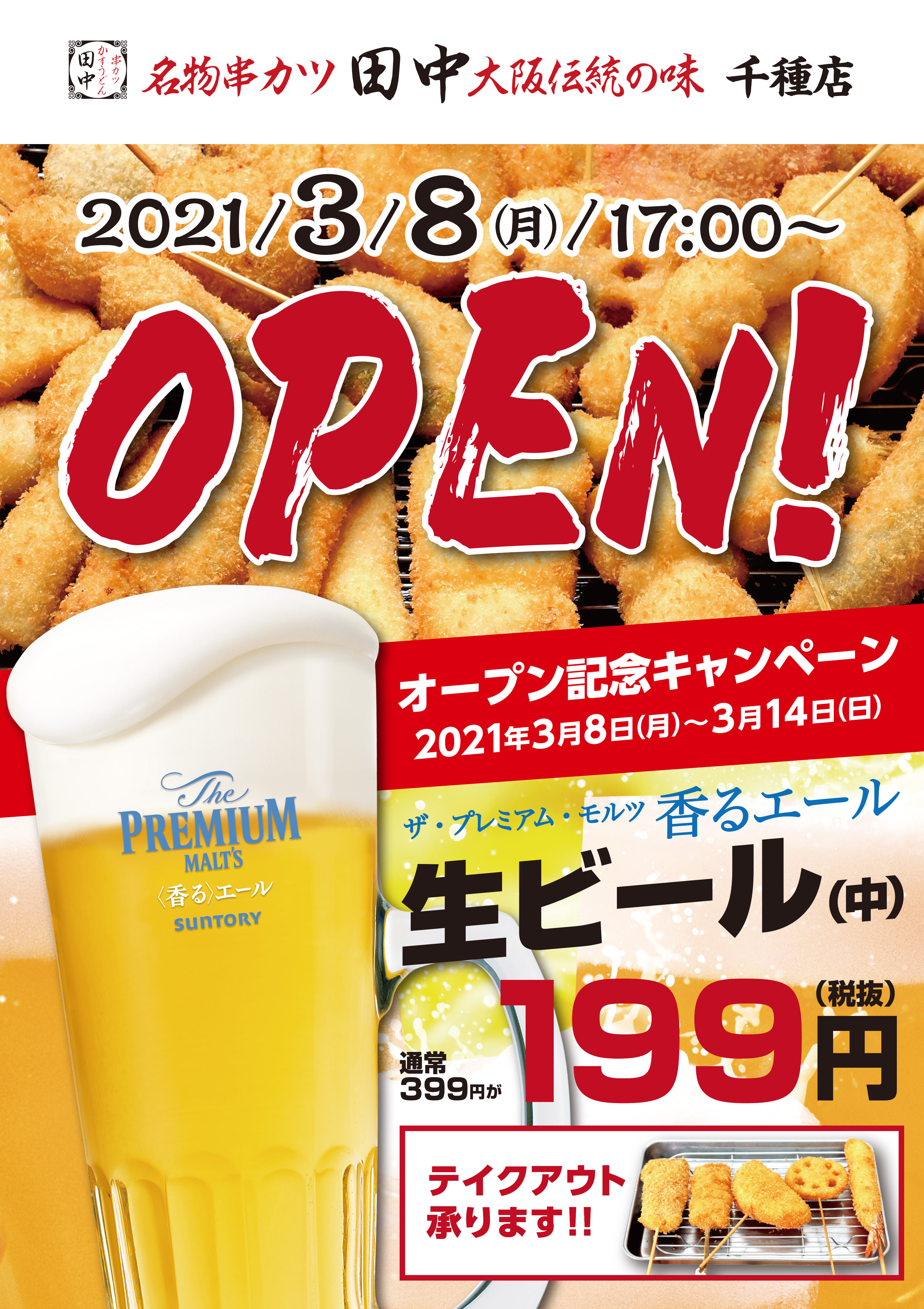 いつも串カツ田中をご愛顧いただき、誠にありがとうございます。 3月8日(月) 17:00~ 串カツ田中 千種店 が新規オープンいたします! ...