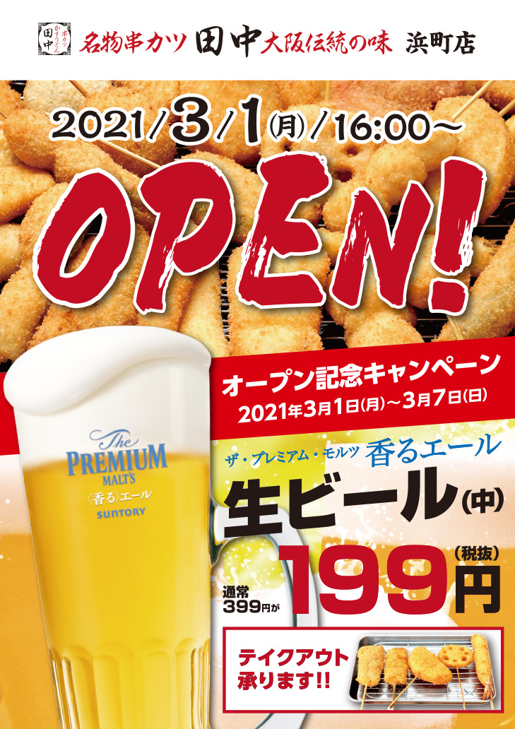 いつも串カツ田中をご愛顧いただき、誠にありがとうございます。 3月1日(月) 16:00~ 串カツ田中 浜町店 が新規オープンいたします! ...