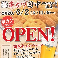 いつも串カツ田中をご愛顧いただき、誠にありがとうございます。 6月2日(火) 11:30~ 串カツ田中 楠店 が新規オープンいたします! ...