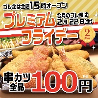 いつも串カツ田中をご愛顧いただき、誠にありがとうございます! ●今月のプレミアムフライデー 2019年2月22日(金)は ➀全店15:00~OPEN ...