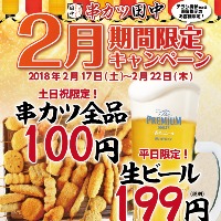 いつも串カツ田中をご愛顧いただき、誠にありがとうございます! 2月17日(土)~22日(木)に、以下の32店舗限定でキャンペーンを実施いたします...