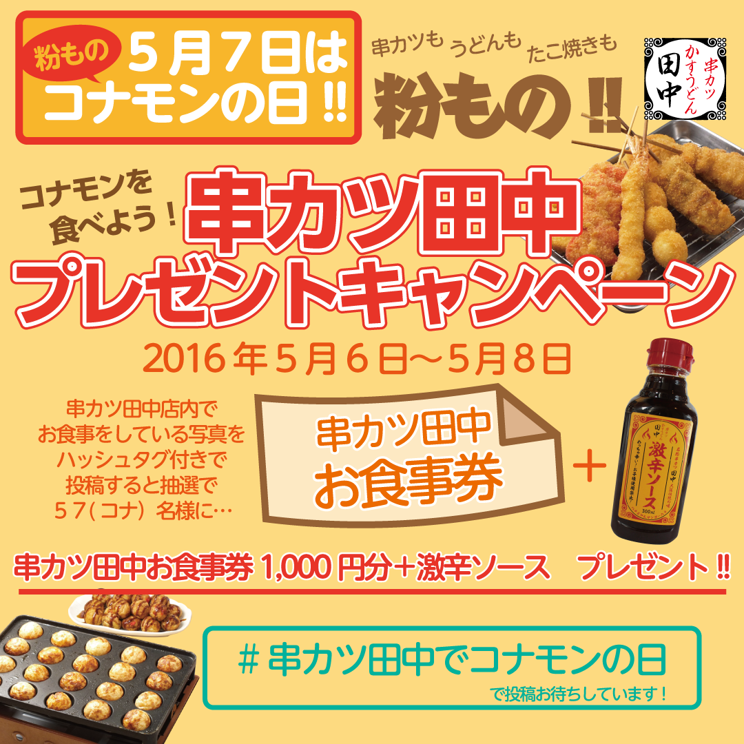 5月7日「コナモンの日」 Instagram投稿⇒プレゼントキャンペーン 当選者数は57(コナ)名様 5月7日の「コナモンの日」に...