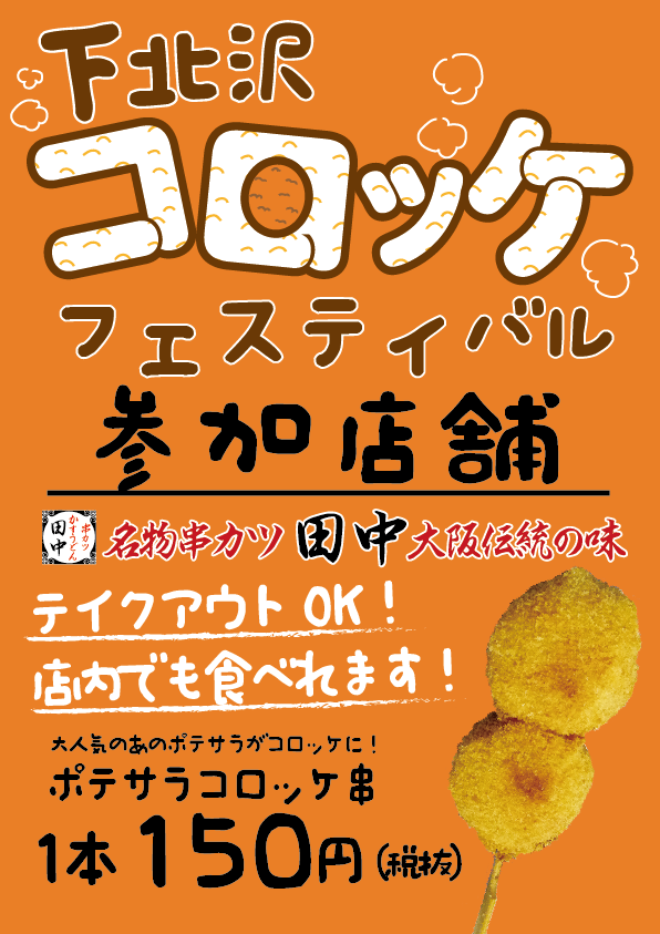 日頃、串カツ田中下北沢店をご愛顧頂きまして誠に有難うございます! 4月13日(水)~24日(日) ≪下北沢コロッケフェスティバル≫ ➡ http...