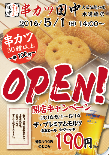 日頃、串カツ田中をご愛顧頂きまして誠に有難うございます! 5月1日(日) 串カツ田中 水道橋店 が新規OPENいたします!! 水道橋店限定...