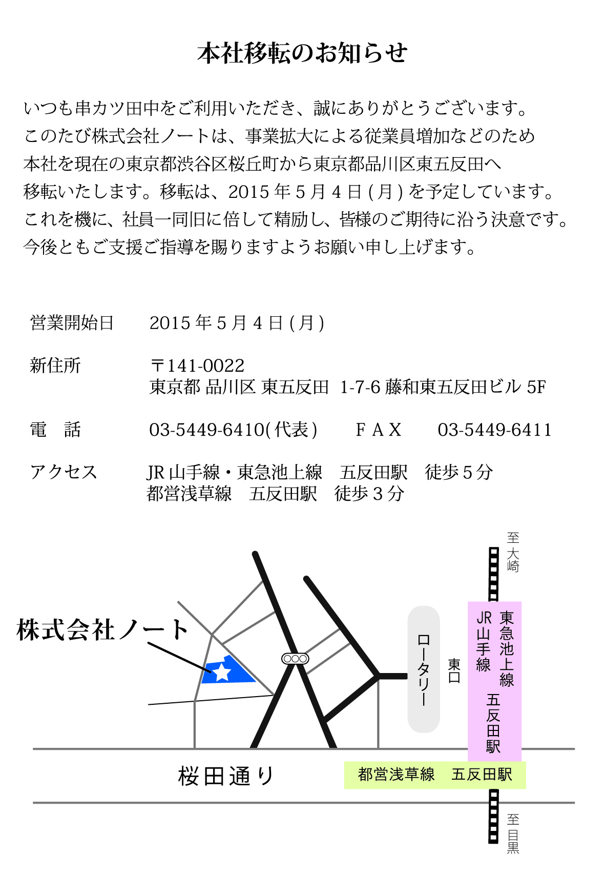 いつも串カツ田中をご利用いただき、誠にありがとうございます。 このたび株式会社ノートは、事業拡大による従業員増加などのため 本...