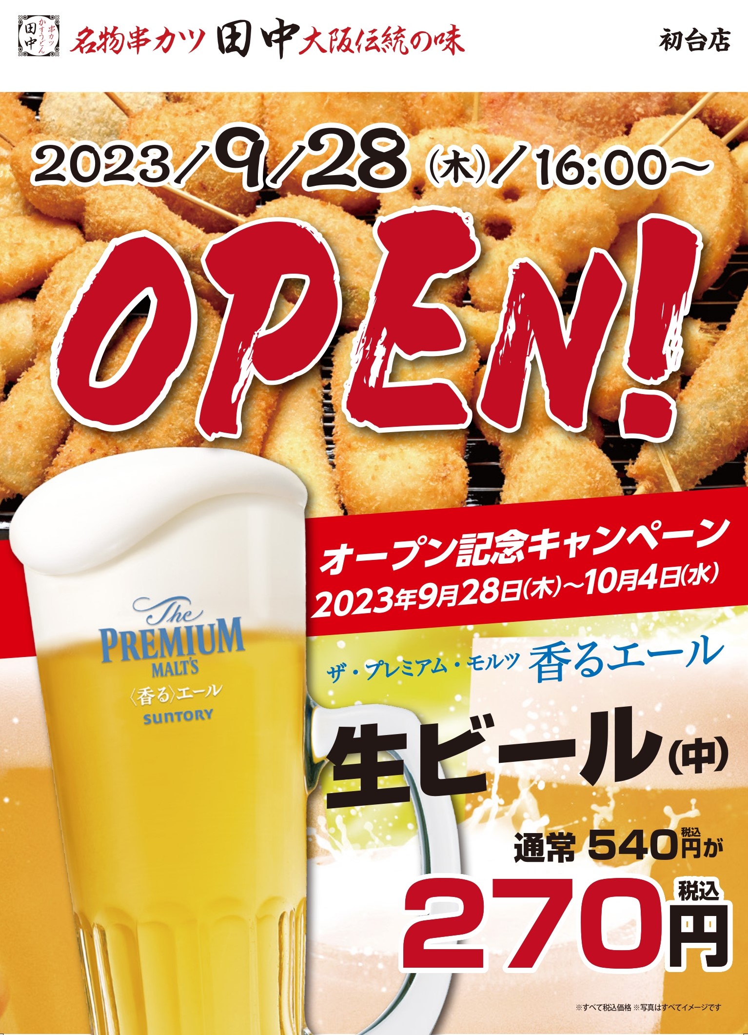 串カツ田中 初台店が 2023年9月28(木) 16:00~ オープンいたします! オープンを記念し、初台店では 以下のキャンペーンを開催いたします...