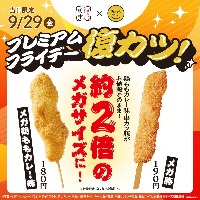 9月のプレ金は大好評のメガ串! 【キャンペーン内容】 9月29日(金)限定!串カツ田中といったらメガ串! お子様に人気の「鶏ももカレ...