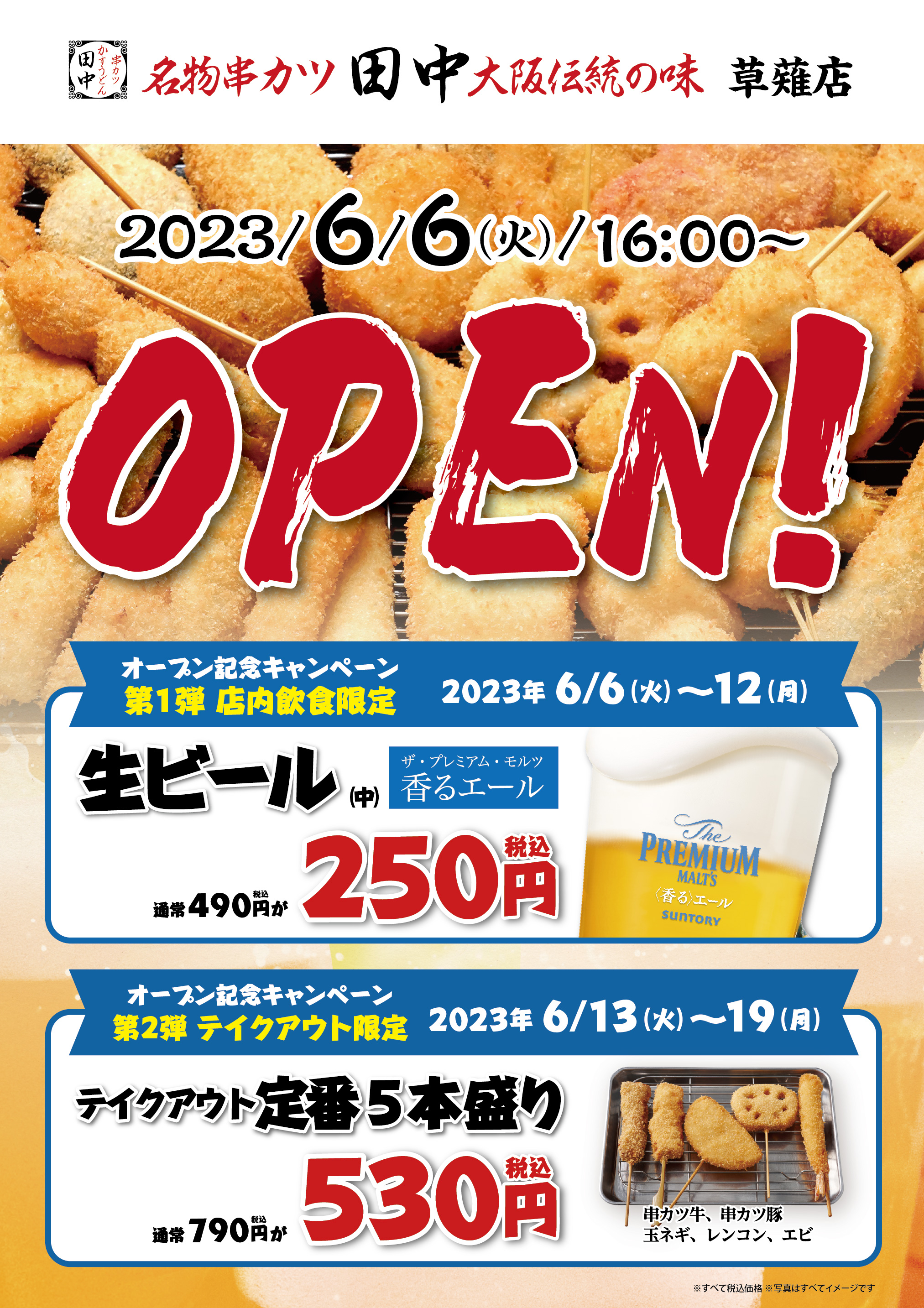 串カツ田中 草薙店が 2023年6月6日(火) 16:00~ グランドオープンいたします! オープンを記念し、草薙店では 以下のキャンペーンを...