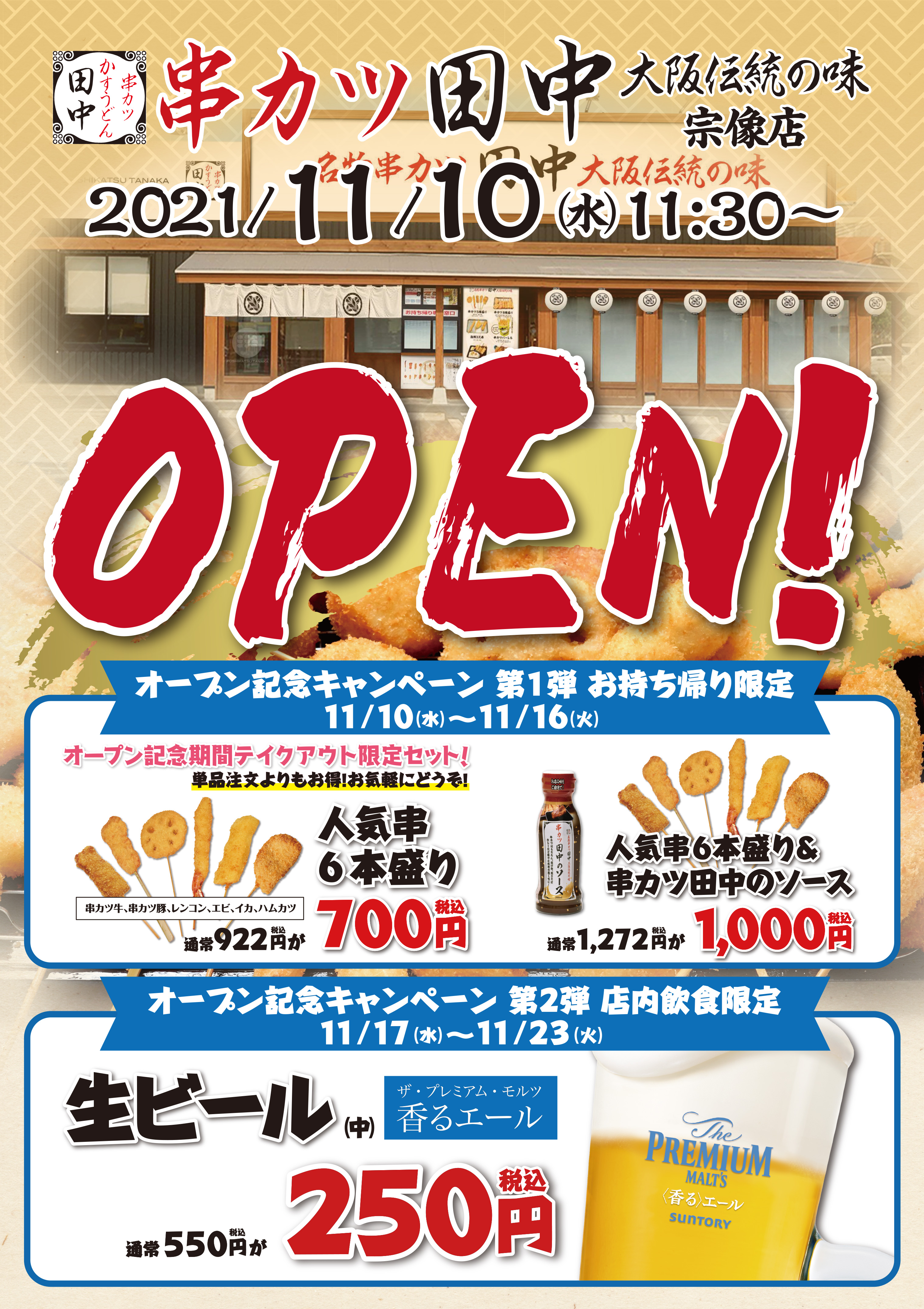 11月4日(木)単日プレオープン をしました 串カツ田中 宗像店 が 11月10日(水) 11:30~ グランドオープンいたします! オープ...