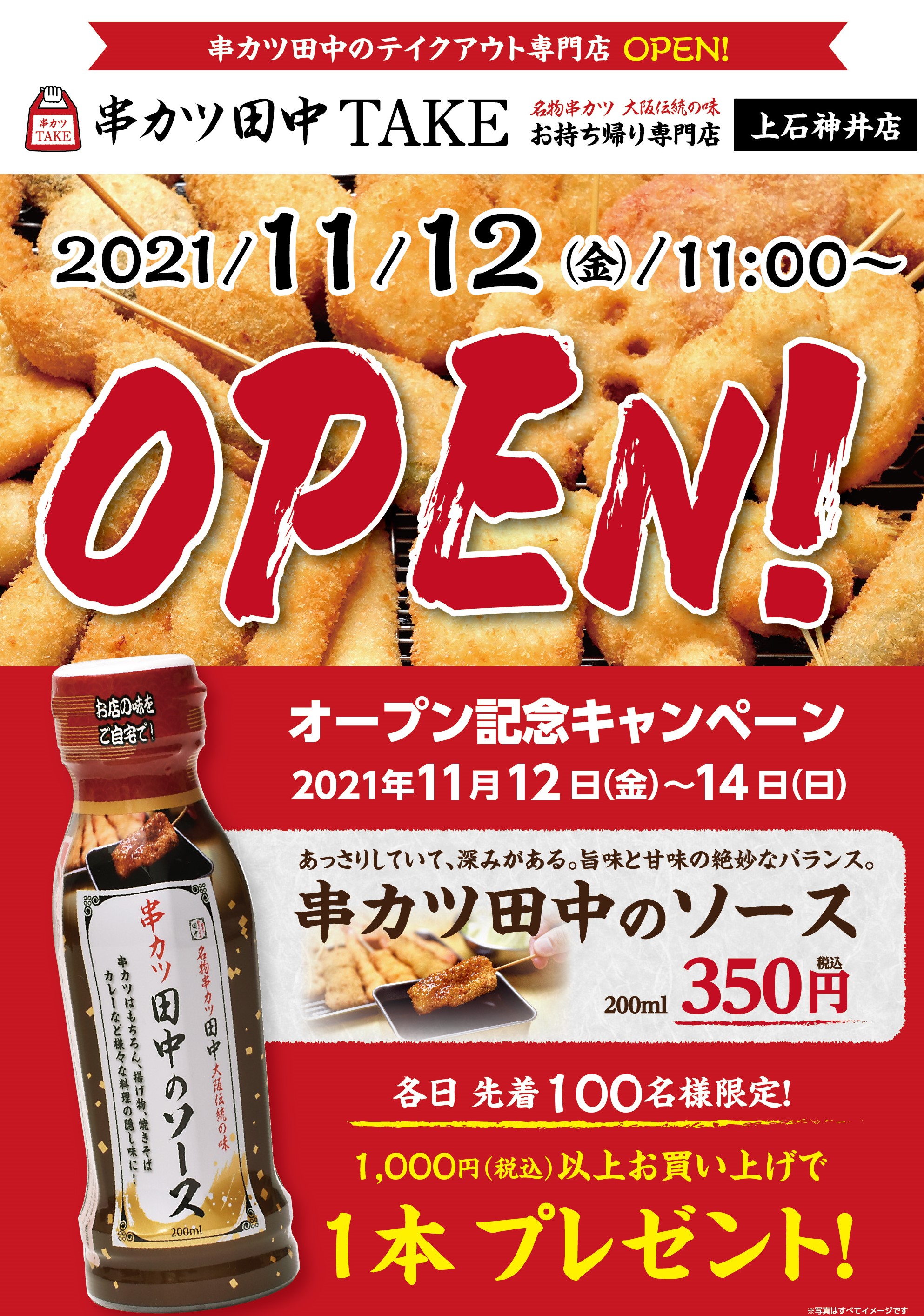 テイクアウト専門店 『串カツ田中TAKE』 の初出店となる 「串カツ田中TAKE 上石神井店」 が11月12日(金) 11:00~ オープンします! オ...