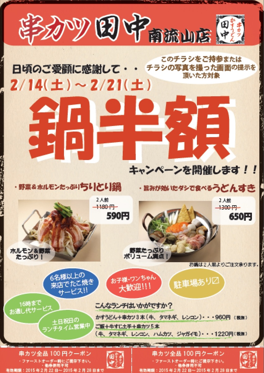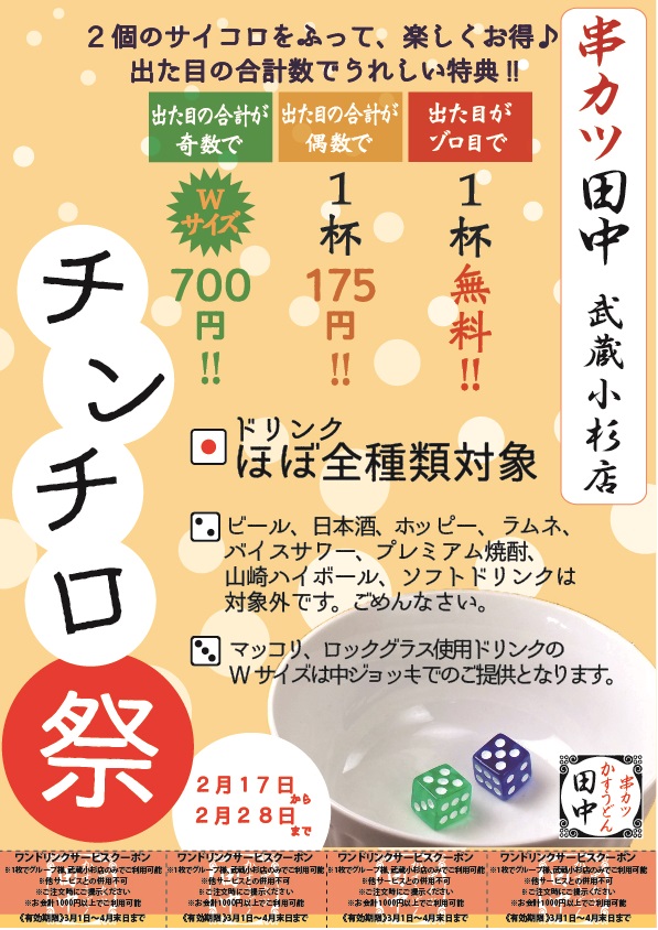 日頃、串カツ田中をご利用頂きありがとうございます。