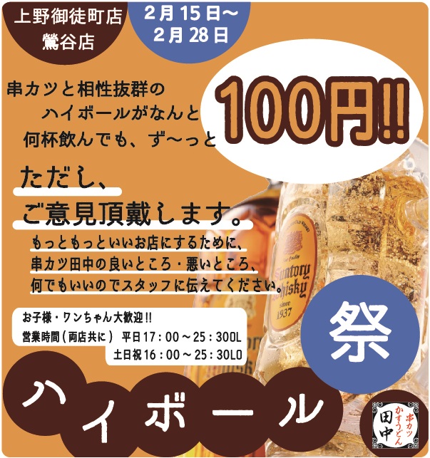 ■都立大店 2月23日~26日 「串100円キャンペーン」