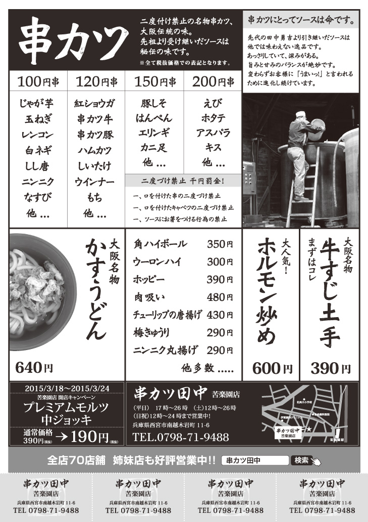 阪神間初出店‼ 2015年3月18日(水)阪急苦楽園駅前に串カツ田中苦楽園店OPEN‼