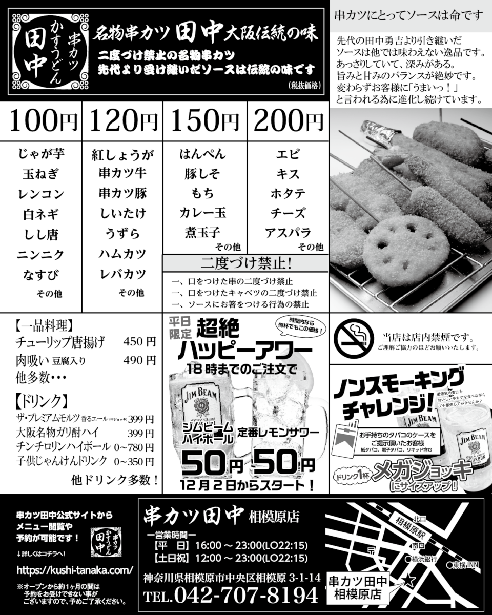 いつも串カツ田中をご愛顧いただき、誠にありがとうございます。