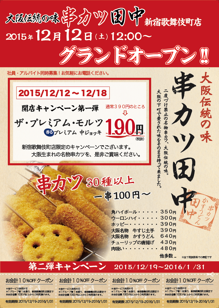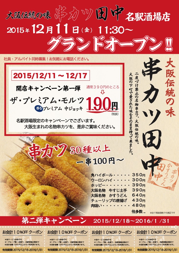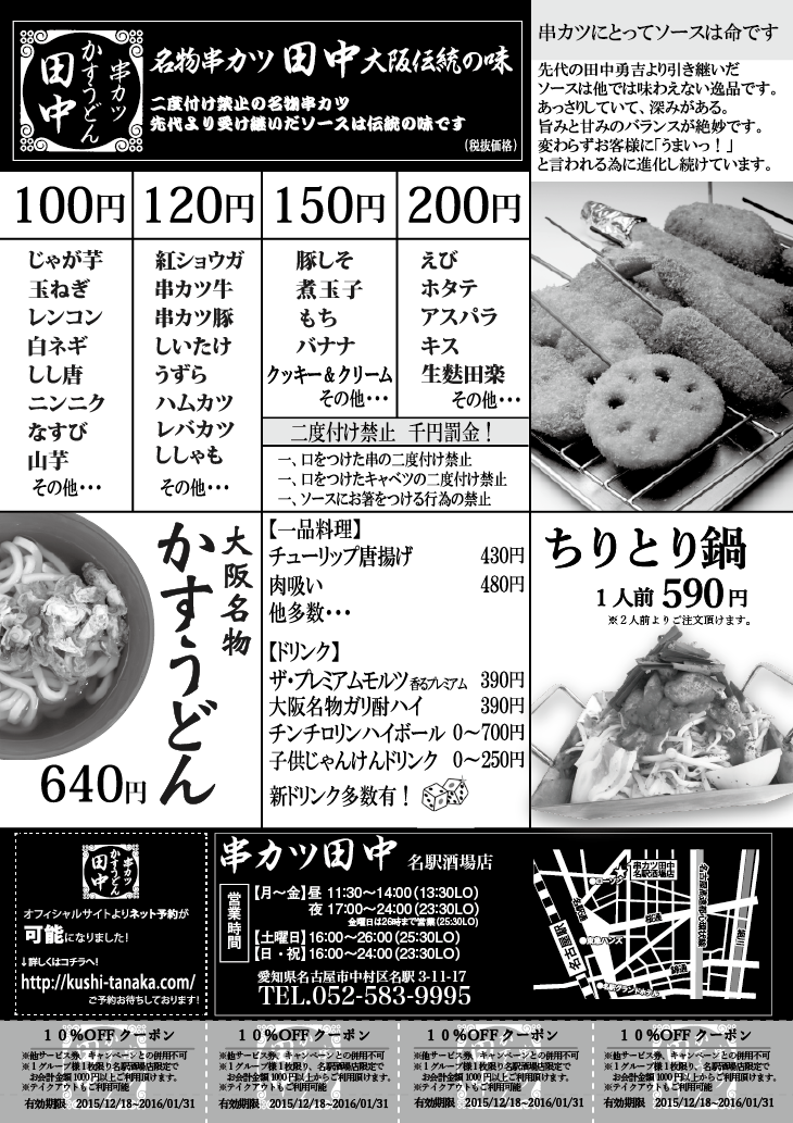 日頃、串カツ田中をご愛顧いただきまして、誠にありがとうございます!