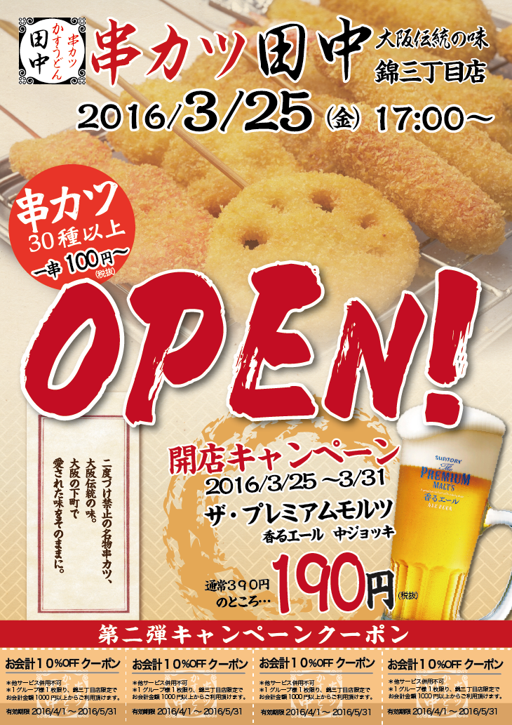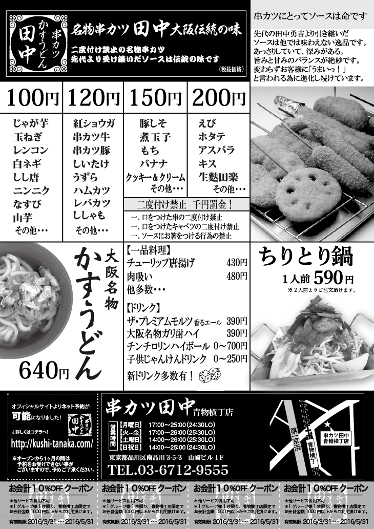 日頃、串カツ田中をご愛顧頂きまして誠にありがとうございます!