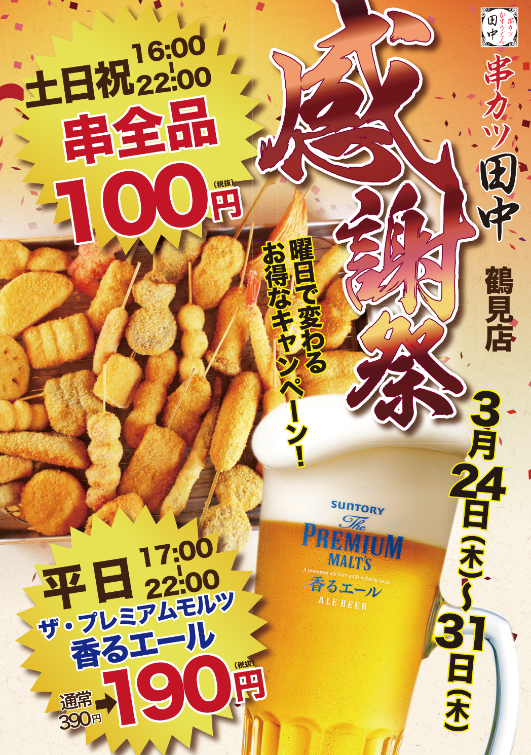 日頃、串カツ田中をご愛顧頂きまして誠に有難うございます!