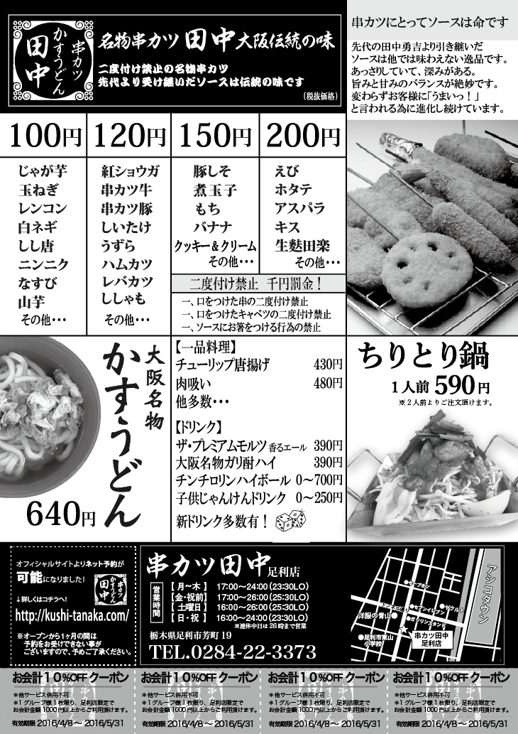ついに!待望の栃木県に串カツ田中が初出店です☆