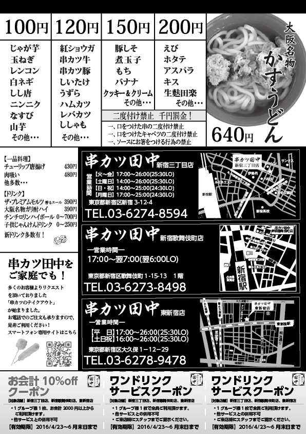 日頃より新宿で串カツ田中をお楽しみ頂きまして誠に有難うございます!
