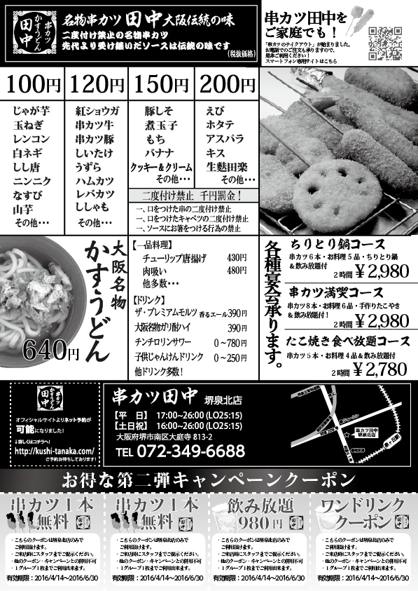 日頃、串カツ田中堺泉北店をご愛顧頂きまして誠に有難うございます!