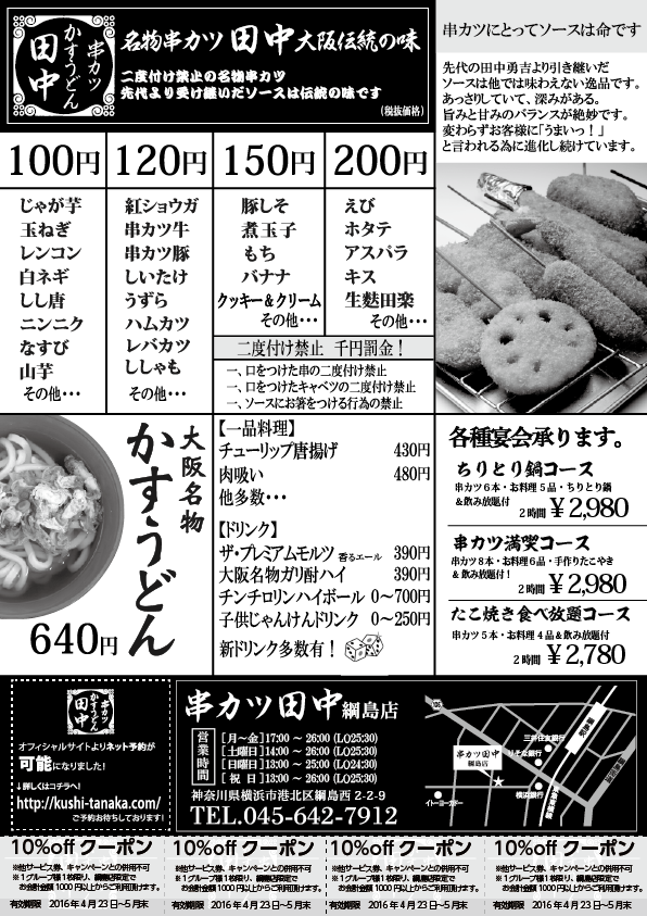 日頃、串カツ田中をご愛顧頂きまして誠に有難うございます!