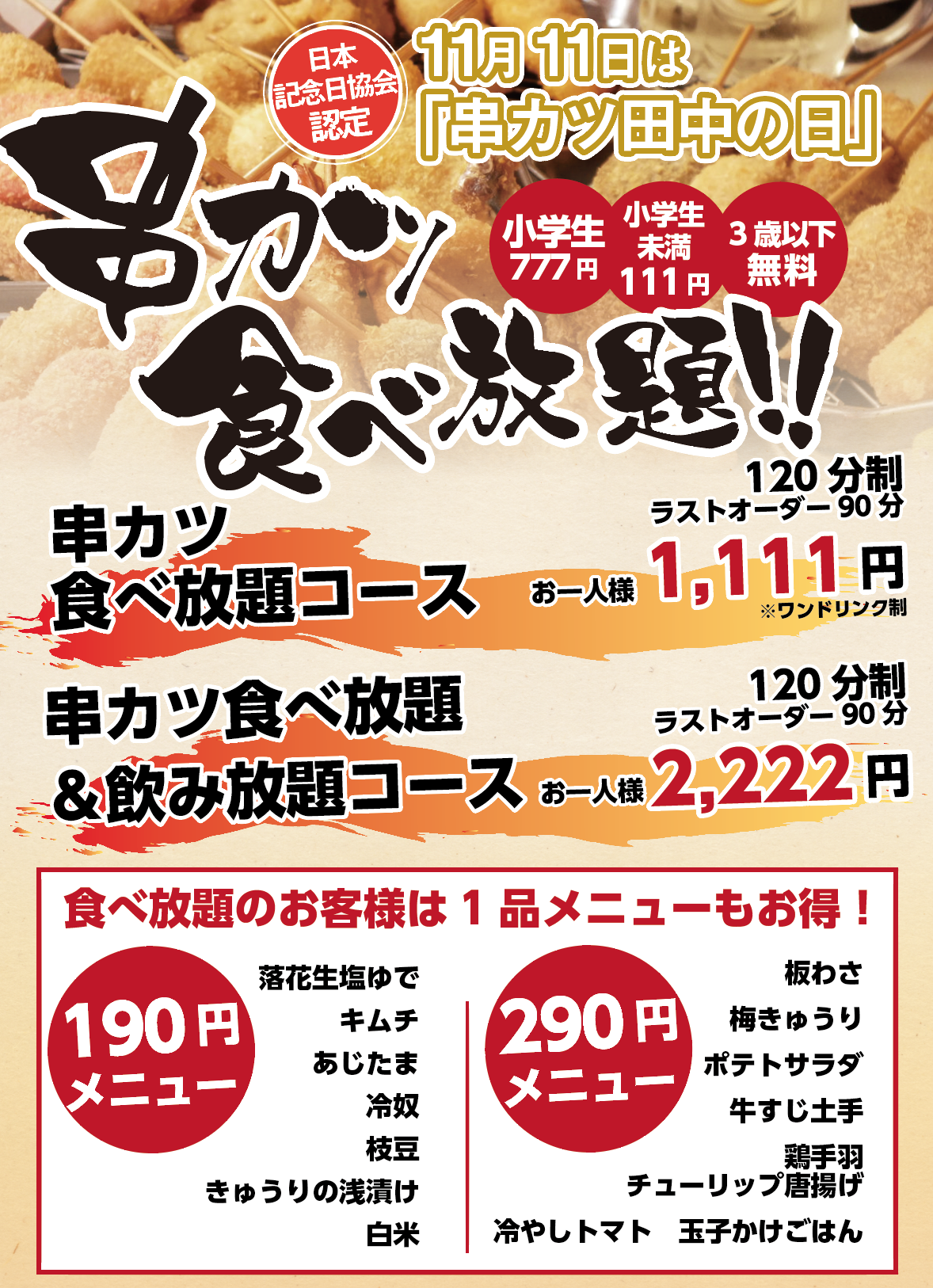 11月11日『串カツ田中の日』!