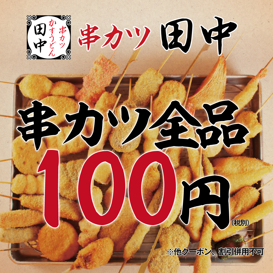 串カツ全品100円で提供させていただきます!