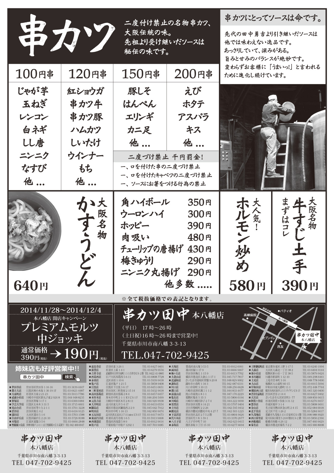 2014年11月28日串カツ田中本八幡店OPEN