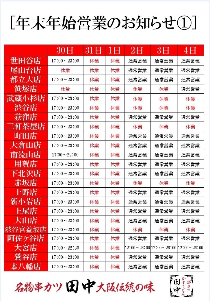 年末年始期間の営業に関しまして、下記の通りご案内させて頂きます。
