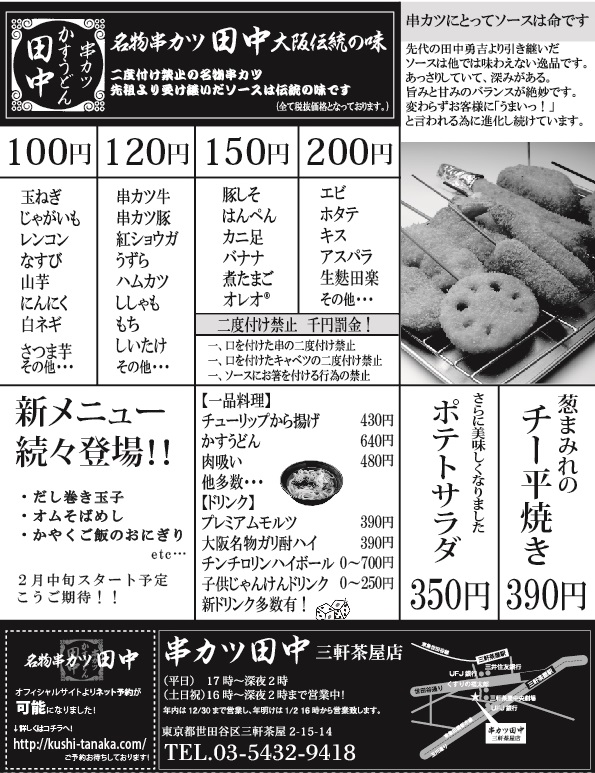 日頃、串カツ田中をご利用頂きありがとうございます。