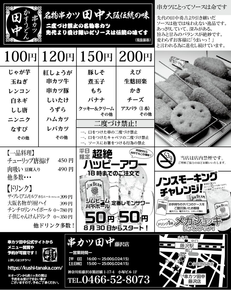 いつも串カツ田中をご愛顧いただき、誠にありがとうございます。