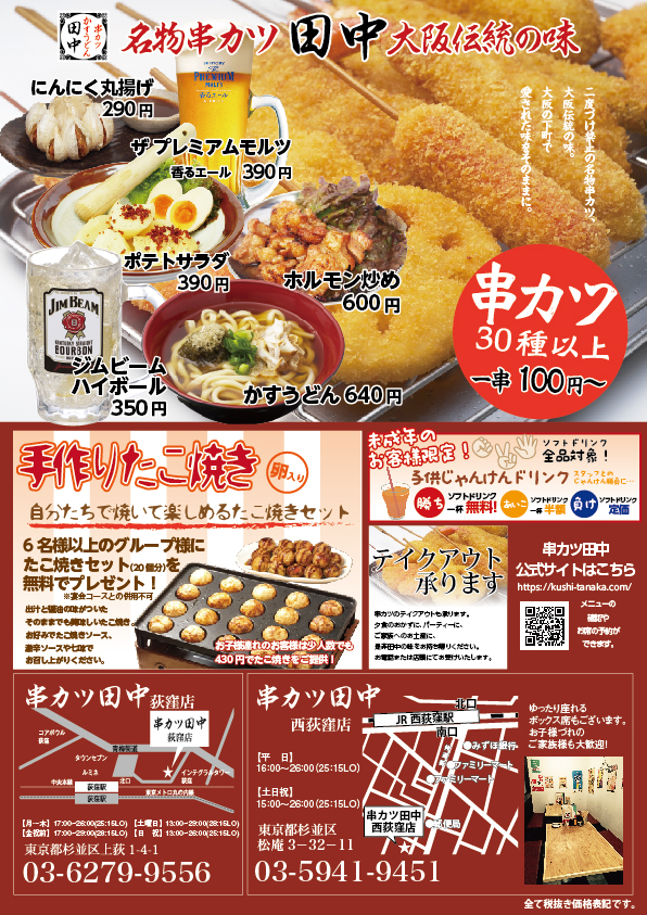 いつも串カツ田中荻窪店、西荻窪店をご愛顧いただき誠にありがとうございます!