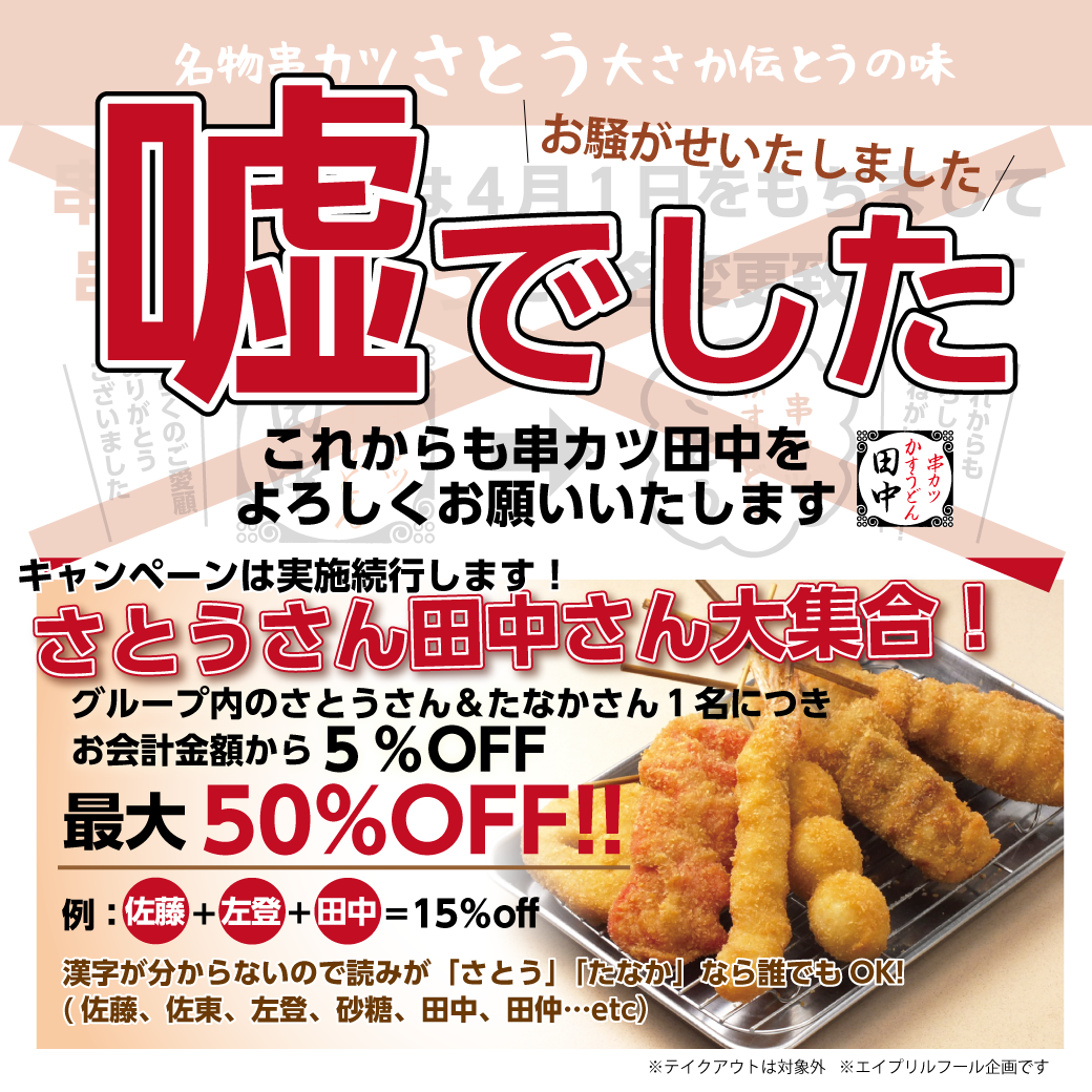 ただし!串カツ田中のエイプリルフール企画は1日だけでは終わりません!